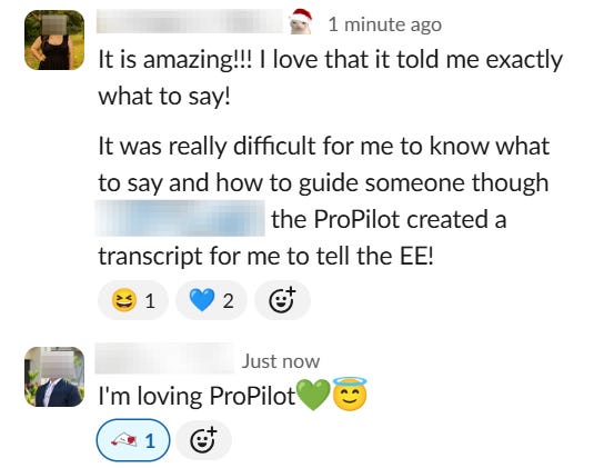 After success with Fridai, the Rosenblatt team expanded into new projects outside of onboarding. Tasked with improving the ProService call center’s first call resolution (FCR) rates, Rosenblatt launched a new AI agent called ProPilot in only 3 weeks. By week 4, call center employees are already providing incredibly positive feedback, and observed FCR increases by +20%.