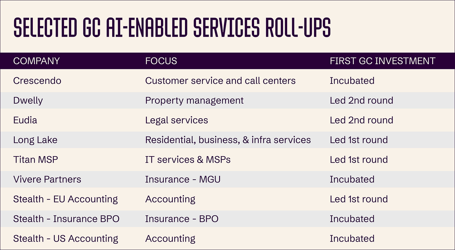 In August of this year, General Catalyst published an article titled “The Future of Services” which explained their AI-enabled roll up strategy. Here’s the TLDR of their strategy in 6 steps: